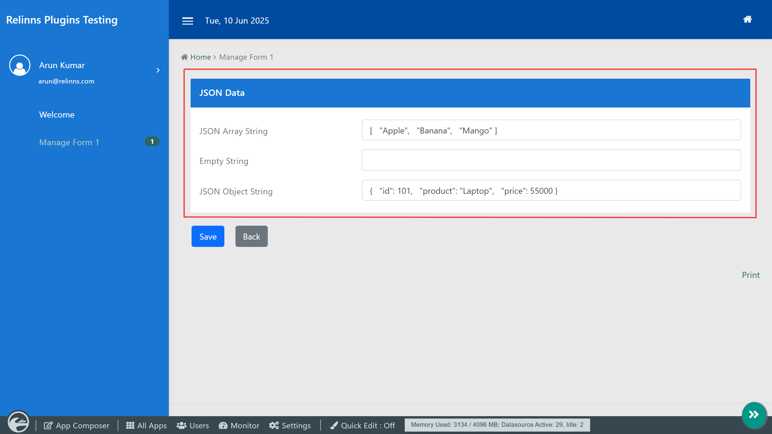 - If any field in the form contains a JSON string (e.g., starts with {} or []), the plugin will automatically parse it into valid JSON.