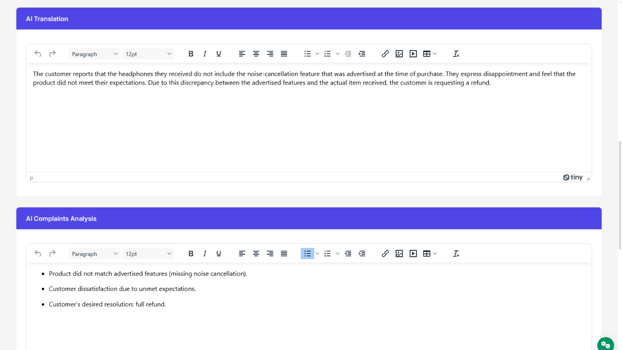 - Customers can describe their issues in their preferred language and submit them seamlessly.