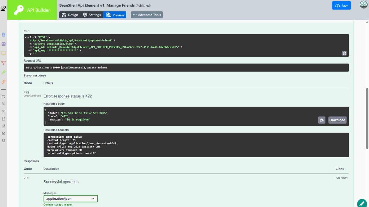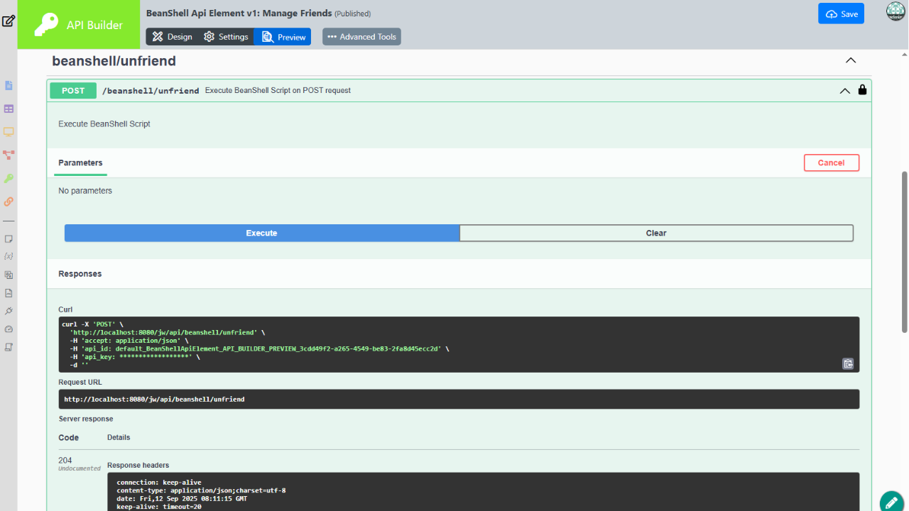 - BeanShell API Element plugin requires API Builder installed on at least Joget DX Version 8.