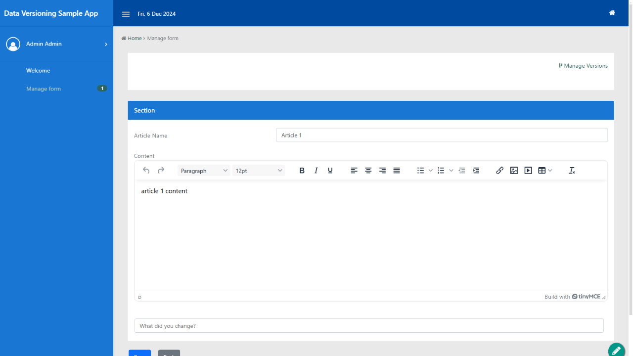 - The Data Versioning Plugin is designed to facilitate form data versioning, allowing users to manage and track different versions of their form data.