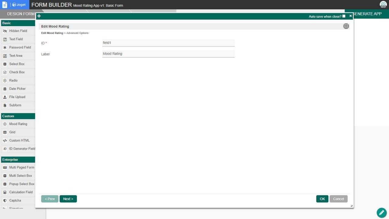 Next, open the form builder to drag and drop the Mood Rating form element into your form.
