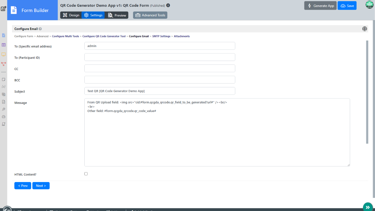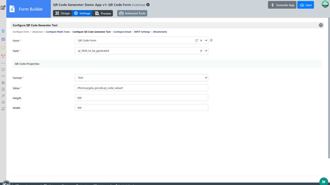 - QR Code Generator Tool generates QR Code to be attached to email through process / post form processing.
