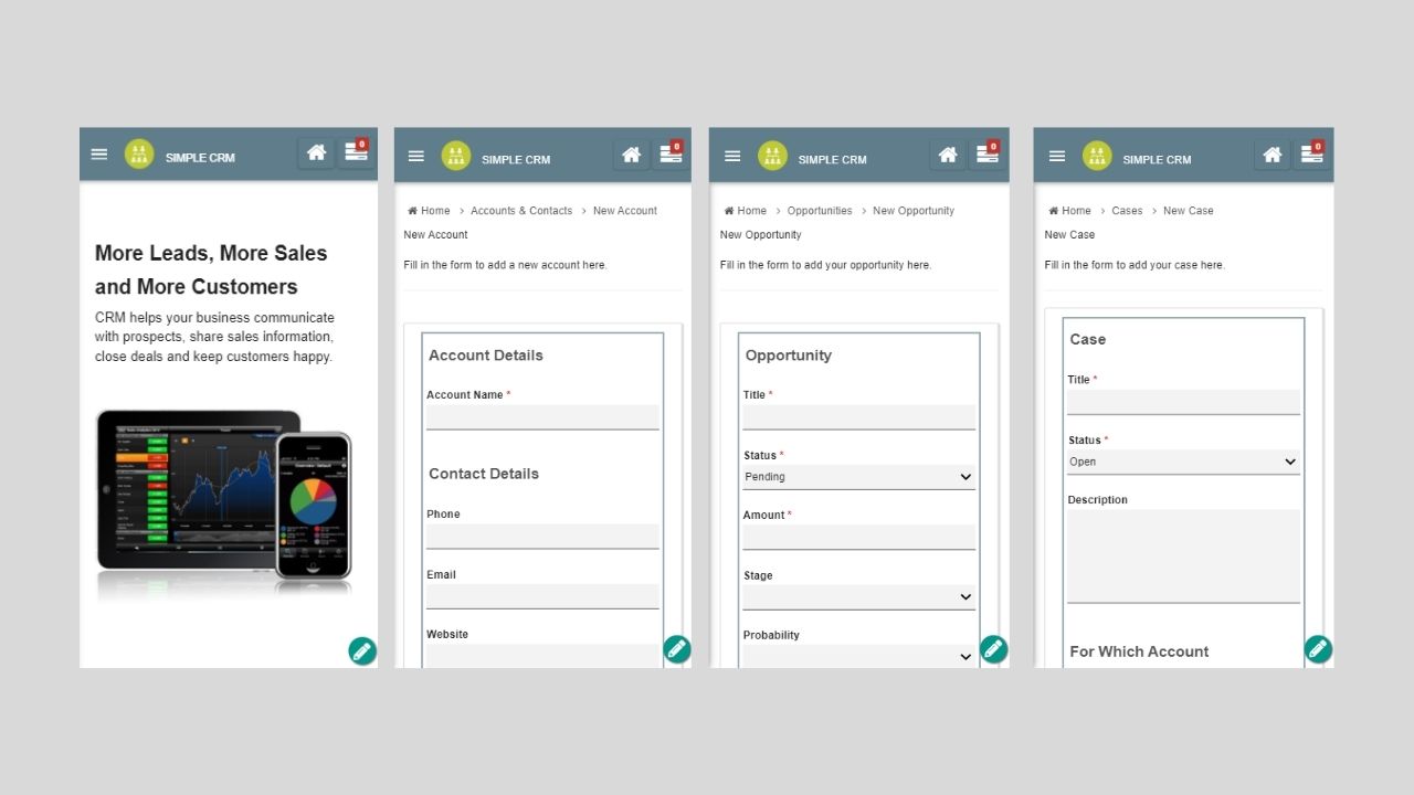More leads, more sales, and ultimately more customers. The Simple CRM app helps your business communicate with prospects, share sales information, close deals, and keep customers happy.