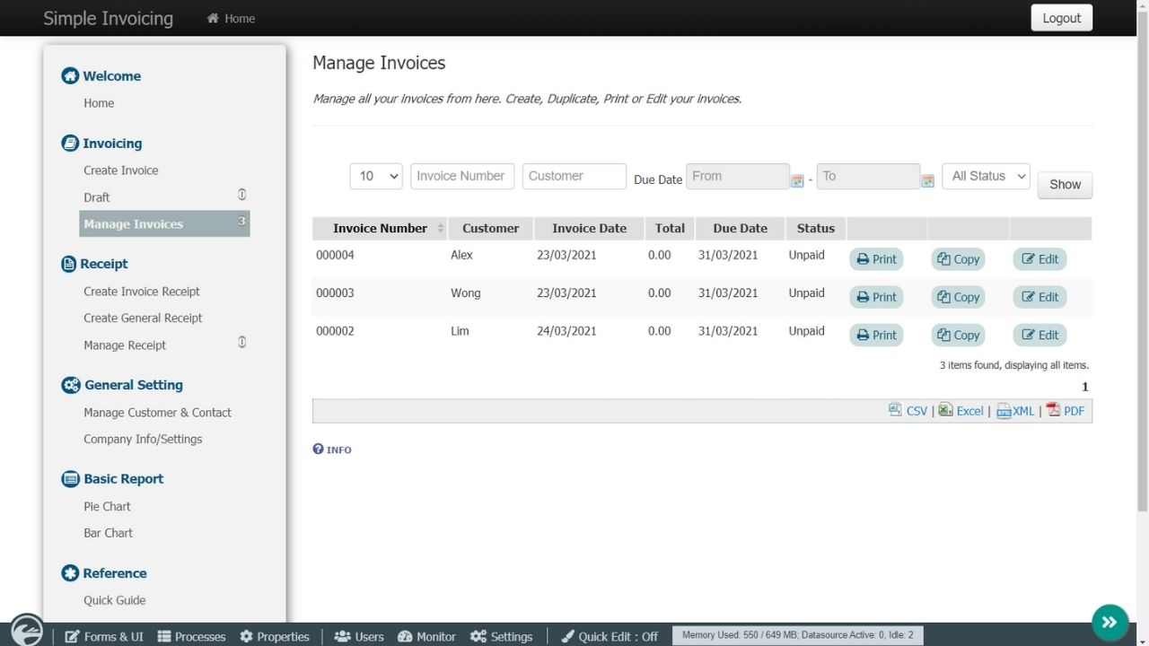 No more need for word processors and spreadsheets when issuing and managing your invoices. Receive notification when an invoice is overdue! Manage your customer and their invoices.
