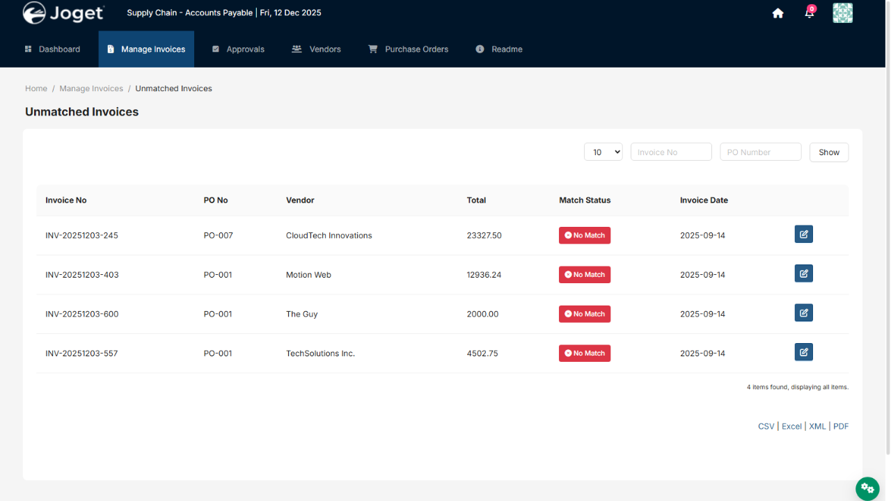 Supply Chain - Accounts Payable App automate invoice processing with AI-powered extraction and PO matching.