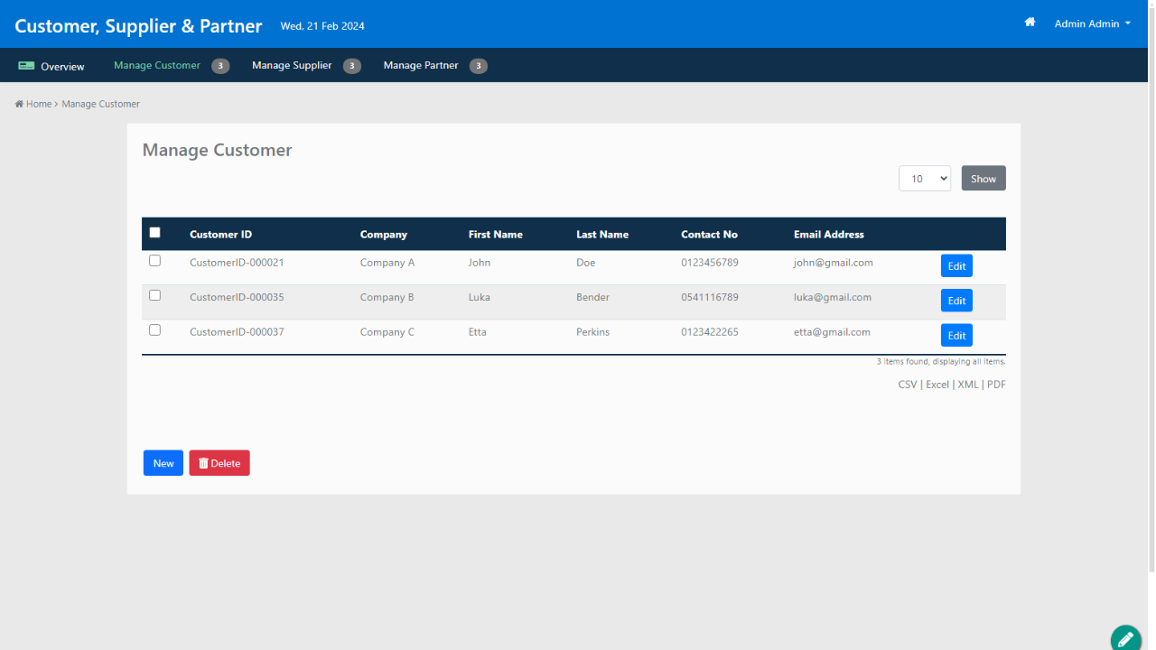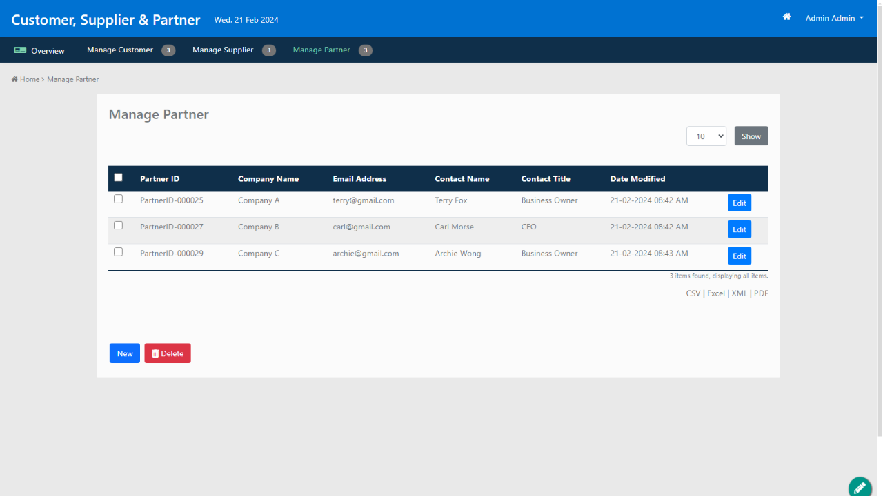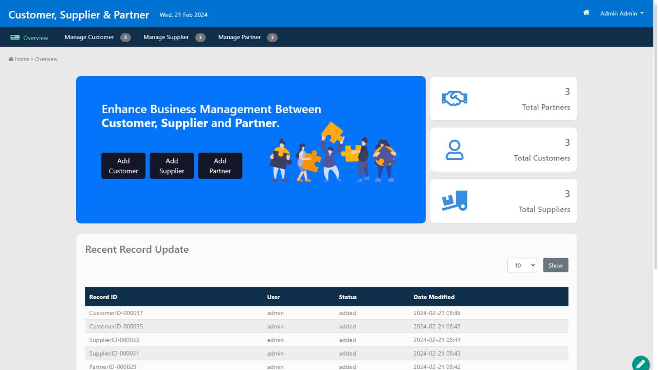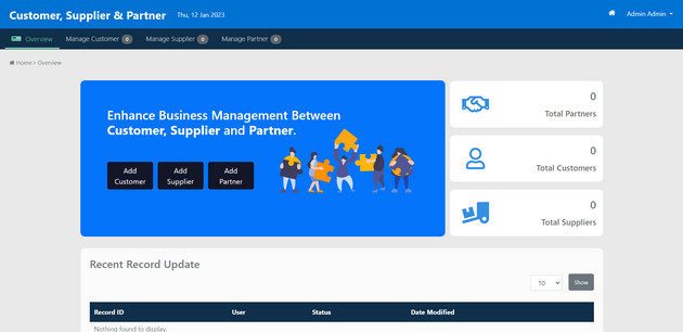 - Users can use this app template to manage customers, suppliers, and partners as records.