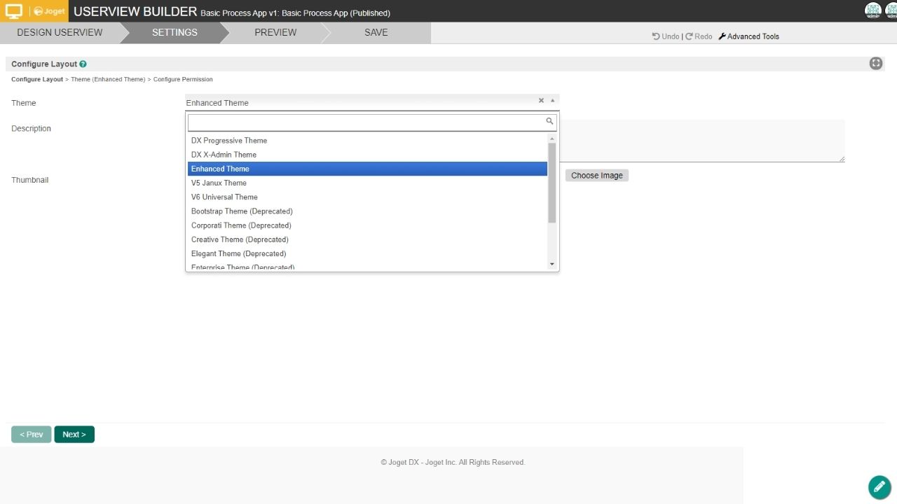 This is an example theme app from Joget training and is not designed for production use.